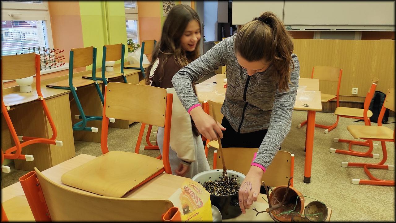 I letos jsme se pustili do přikrmování ptáků na školním pozemku.