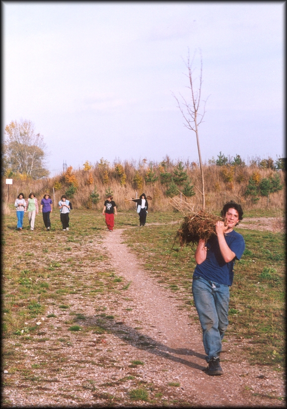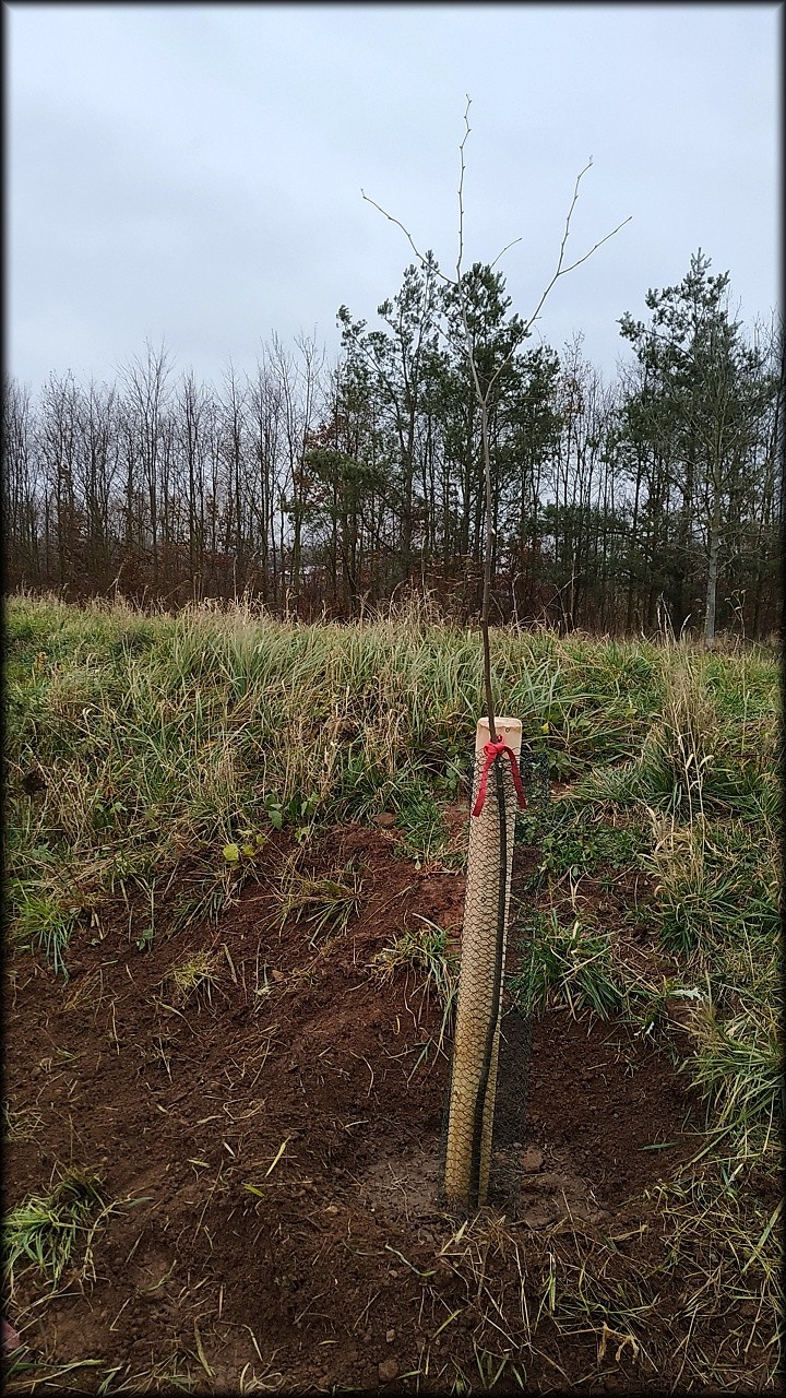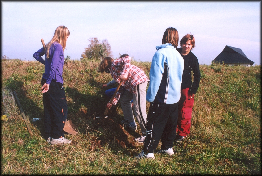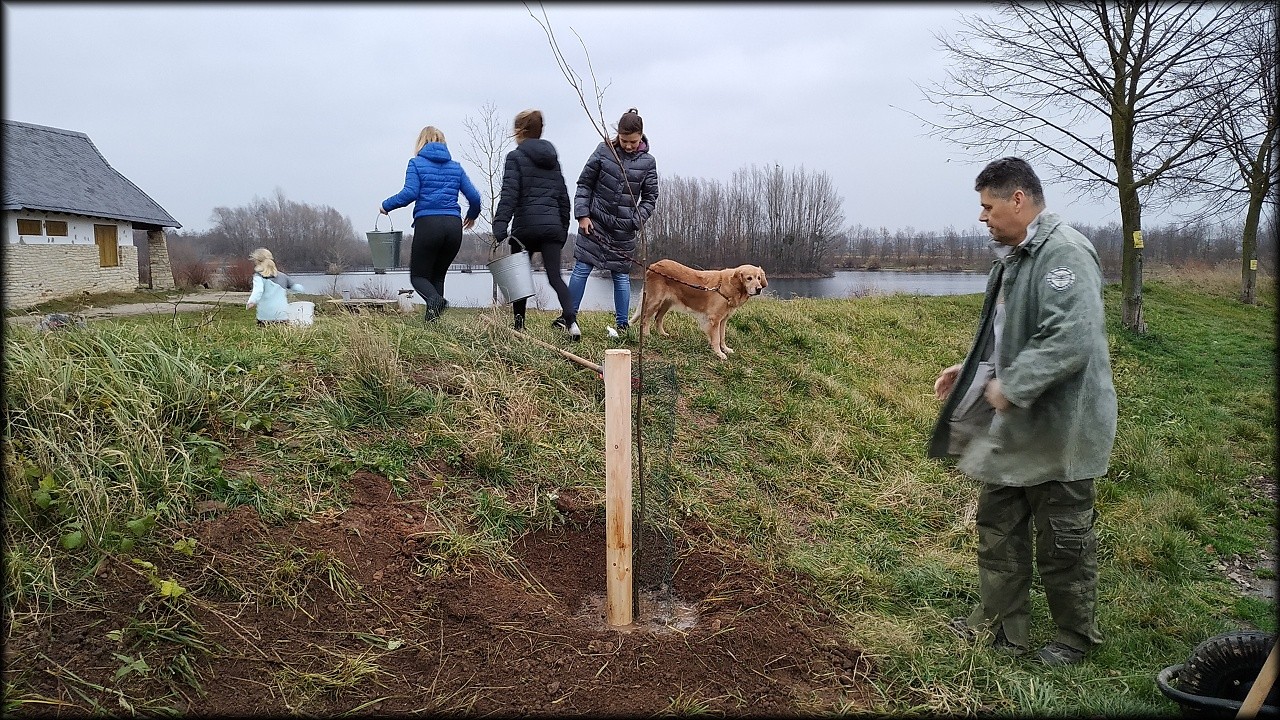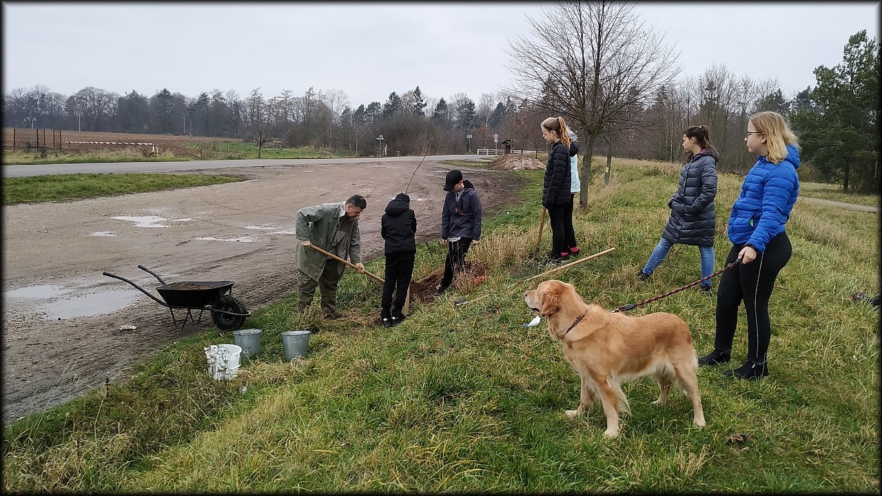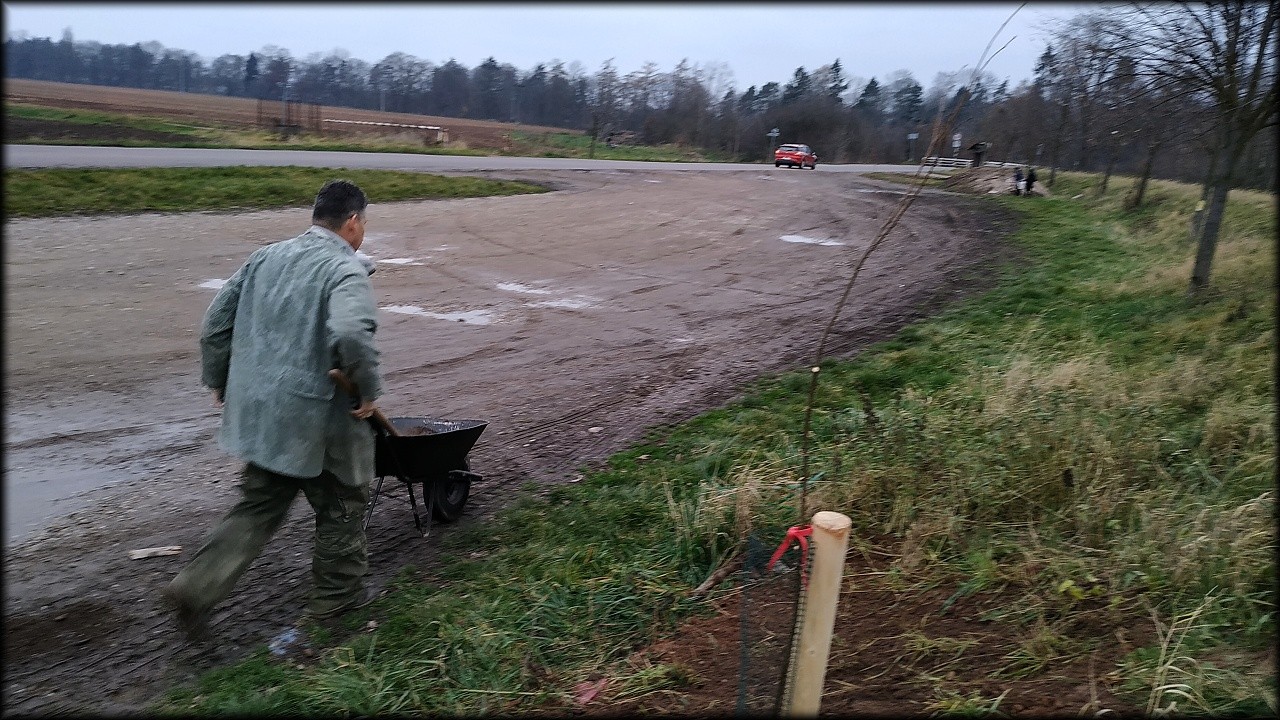 Bylo sice větrné, ale na listopad pořád krásné počasí. Tak jsme toho využili k výsadbě stromků. Vlastně, k doplnění lipové aleje, kterou jsme u parkoviště vysadili přesně před patnácti lety.