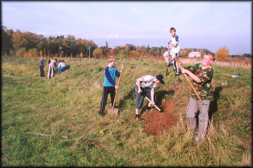 Ve středu jsme se vypravili vysadit lípy do připravených děr.