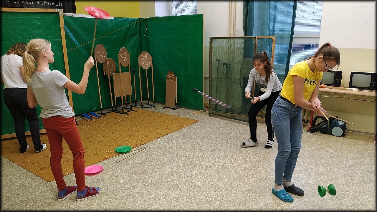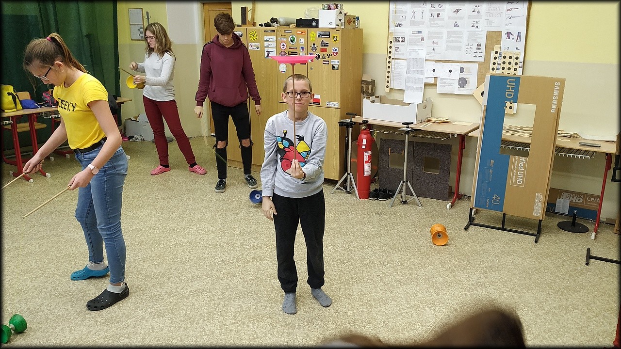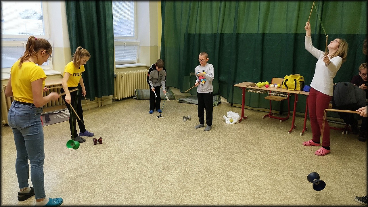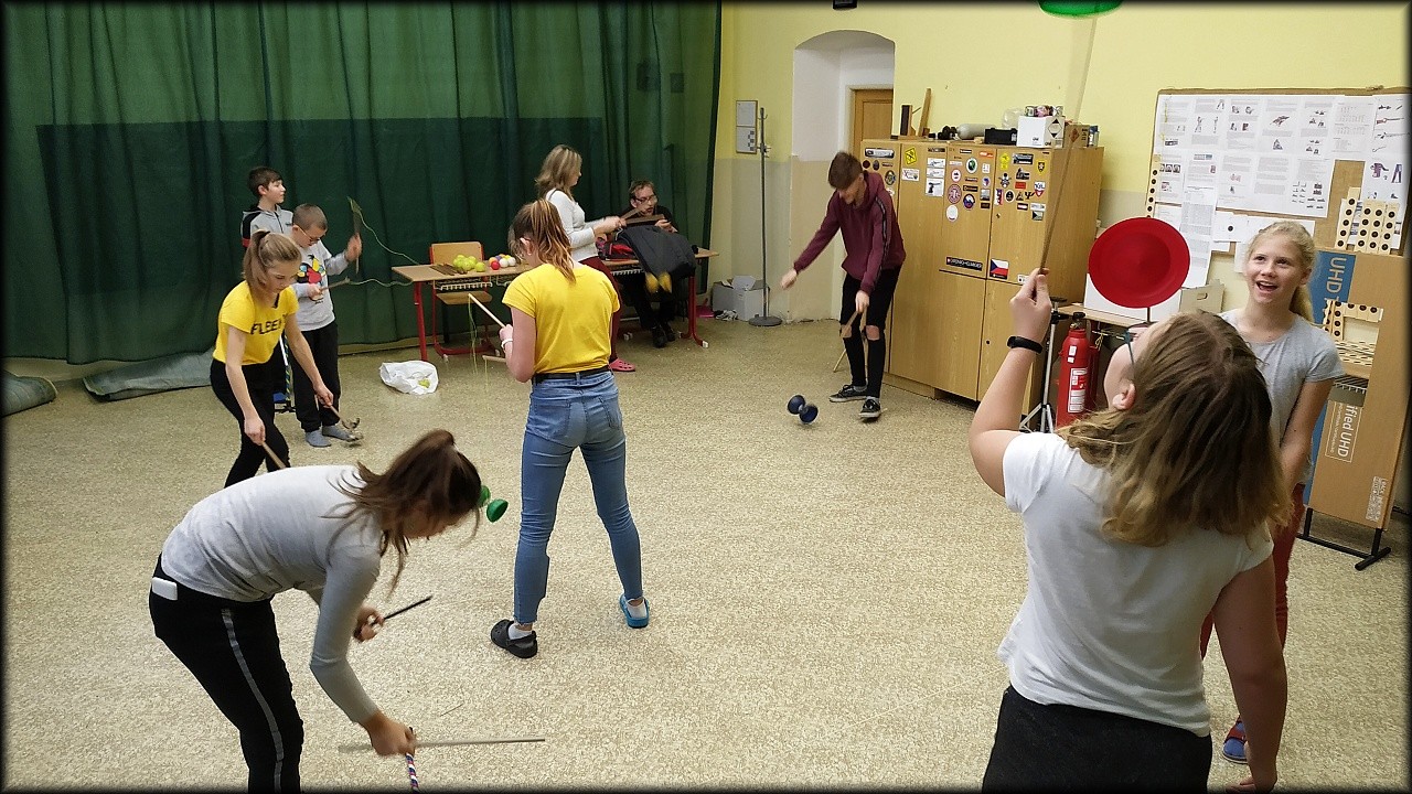 Každý si vyzkoušel, co chtěl. K dispozici jsme měli flowerstick, diabolo, talíře, míčky a tréninkové poi. Po chvíli nácviku si každý vybral, co mu nejvíce sedí, a snažil se své umění zdokonalit. Opustit naši běžnou činnost a odreagovat se, bylo příjemné. Třeba se k žonglování zase někdy vrátíme.